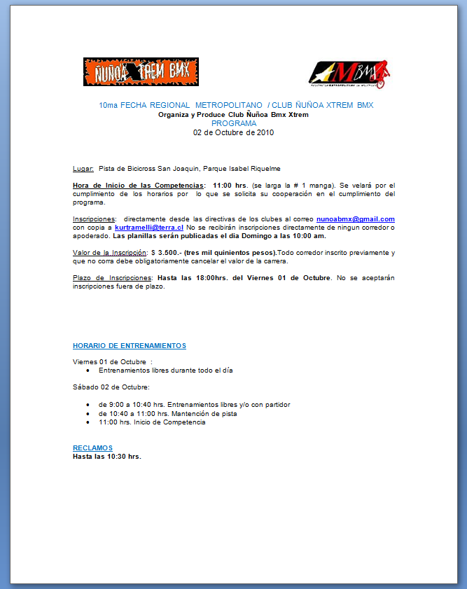 Si deseas conocer las distintas alternativas del campeonato metropolitano, nacional e internacional de nuestra hermosa disciplina deportiva, te invitamos revisar en detalle este blog. Mantendremos constante y actualizada información para nuestros socios, deportistas y en especial para quienes deseen conocer e integrarse a las fabulosas emociones del bmx racing.