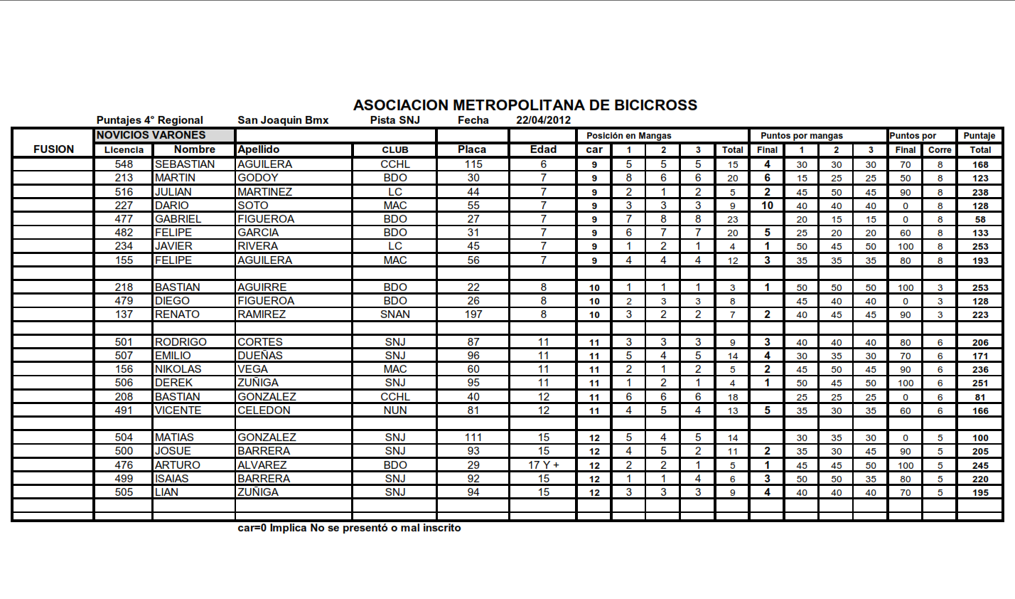 Adjunto algunas fotos de la pista que muestra el estado como también el listado de los inscritos 451 por categoría para la fecha Suramericana, para la fecha Panamericana seguro que subirá un poco, que deseo el poder realizar un campeonato en Chile con esta cantidad de inscritos, para meditar, primero hay que empezar por casa, son casi 200 los Bolivianos, para el pasado internacional que realizamos en Febrero los Chilenos Challenger fueron 69……